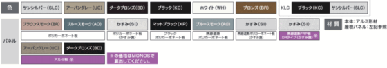 お色味は本体のアルミ色6色かブラックとサンシルバー