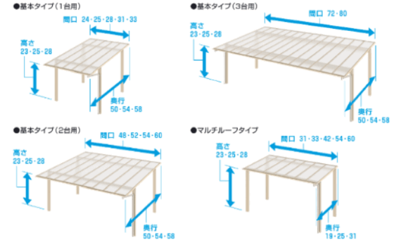 、間口連結タイプなど、敷地形状や車の台数に応じて柔軟な設置が可能です。