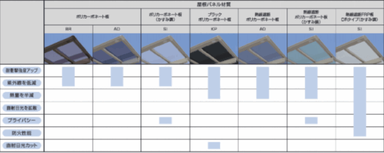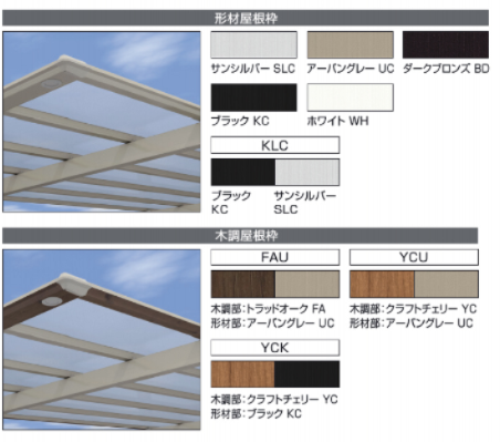 屋根材にはポリカーボネートや熱線遮断タイプ、ブラックポリカなどを選べ、優れた遮熱・採光性を持ちます。