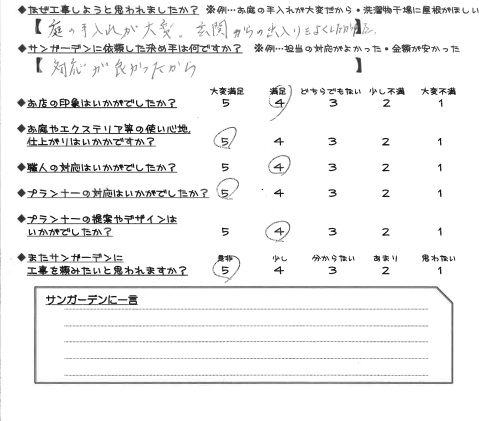 - またサンガーデンに工事を頼みたいと思われますか?