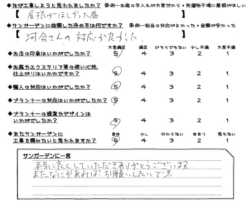 この度はサンガーデンエクステリアにご依頼いただき誠にありがとうございました。弊社の従業員にそのような言葉を書いていただいたこと、とても嬉しく思います。今回ご依頼いただいたカーポートですが、ご自宅の外観に合っていてとても良い工事になったと思います(≧▽≦)また何かございましたらいつでもご相談お待ちしております。