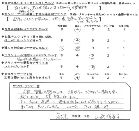 - 近所にエクステリア店がなく、以前も一度見積りに来ていただいたことがあったから。