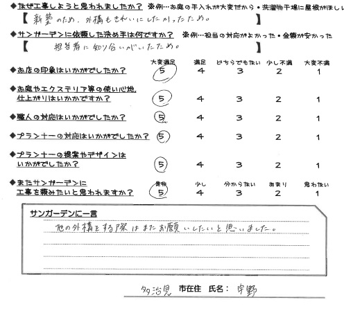 またサンガーデンに工事を頼みたいと思われますか?