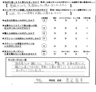 担当者さんや職人さん、たいへん暑い中、お疲れ様でした。職人さんたちにケガもなく無事に工事が終了してホっとしております。 ありがとうございました。