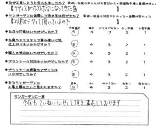 いつもご依頼いただきありがとうございます♪今回はお庭のフェンスを施工させていただきました。樹脂フェンスはイメージも柔らかく、板と板の隙間もお好みで調整が可能なのでご自宅に合わせてフェンス施工ができます。門扉も合わせて素敵なお庭になりました!ご感想ありがとうございます。今後ともよろしくお願いいたします。