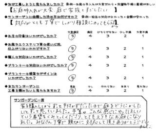 ご感想ありがとうございます。ご購入後ずっと気にされていたお庭が、ご希望やご予算を踏まえたうえでご満足いただける仕上がりになったと伺い、私どもも嬉しい気持ちでいっぱいです。スタッフの対応についてもお褒めのお言葉をいただき、励みになります。今後とも何かございましたら、いつでもお気軽にご相談ください。