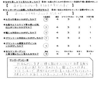 ご感想ありがとうございます。お庭のお手入れにご負担を感じていらした中で、私どもに工事をお任せいただけたこと、大変うれしく思っております。プラン変更の際もご納得いくまで一緒に考えた結果、気に入っていただけるお庭が完成し、私たちも安心いたしました。また何かございましたらいつでもご連絡ください。