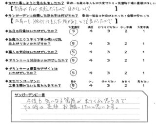 このたびは再びサンガーデンエクステリアに工事をご依頼いただき、誠にありがとうございました。お部屋の目かくしとしての施工をお任せいただき、快適で安心な暮らしづくりに携われたことを大変うれしく思っております。以前の工事から引き続きご縁をいただき、スタッフ一同心より感謝申し上げます。完成した空間が、ご家族や日々の生活に安心感と快適さをもたらし、気持ちよくお過ごしいただけることを願っております。今後も気になる箇所がございましたら、ぜひお気軽にご相談ください。お客様の暮らしをより豊かにするお手伝いを、これからも全力でさせていただきます。