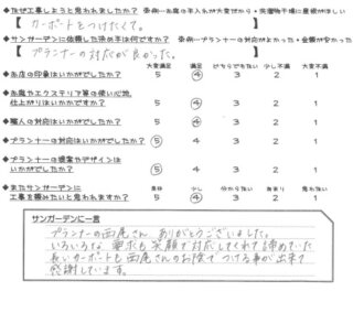 プランナーの西尾さん、ありがとうございました。いろいろな要求も笑顔で対応してくれて諦めていた長いカーポートも西尾さんのお陰でつける事が出来て感謝しています。