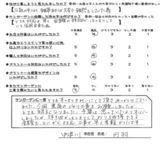 - またサンガーデンに工事を頼みたいと思われますか?