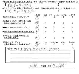 またサンガーデンに工事を頼みたいと思われますか?