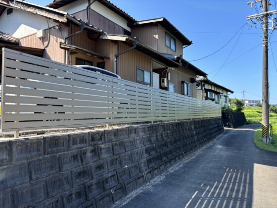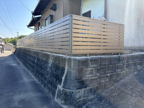 ブロック塀が倒れる事故、知っていますか?古いブロック塀は中に鉄筋が入っているか分からない場合があります。大きな事故を先に防ぐ為に、高いブロック塀を撤去してアルミに変えました。和風のご自宅にだったので、落着きのあるアーバングレーで施工しました。風を通しやすくする為に、少し隙間のある目隠しフェンスを設置させて頂きました。ご依頼頂きありがとうございました♪