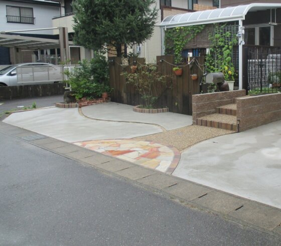 坂祝町|広くオシャレなアプローチ|舗装工事