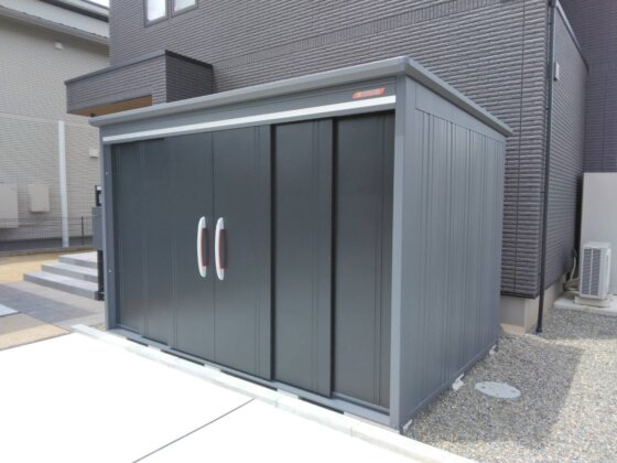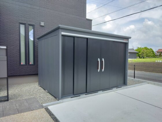 お庭の収納と言えば物置です♪物置はいろいろな会社様が製造されているのでどれを選べばいいのか困ったことはございませんか?今回の施工例ではお家の外観のお色味を基準に設置させていただきました!!物置に限らず色というのはエクステリア商品を選ぶ中で大きい基準になってくると思います。ぜひ物置などをお考えの方は色やサイズなどの理想をご気軽にご相談ください!!モダンな雰囲気で統一感のあるかっこいい物置になったと思います。ご相談いただきありがとうございました。