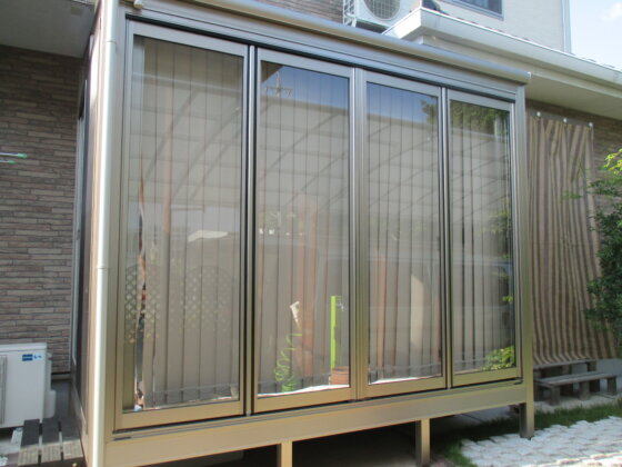 今回はガーデンルームの施工をさせていただきました。ガーデンルームはリビングの延長として使える為、洗濯物を干す際などにわざわざ外に出る必要もありません。冬でも保温性のあるガーデンルームは大活躍で熱を逃がさない分しっかりと洗濯物を乾かすことが出来ます!洗濯物を干していない時などはくつろげるスペースにしてみたりお子様の遊び場にも利用できるので使用用途は人それぞれです。今回の施工のポイントは、縦型のブラインドカーテンを使用しており状況に応じて開閉や採光を取り入れることが出来るようになっています!オプションの竿掛けセットが付いていることによって洗濯物をかけられる量も増やすことが出来ました!より快適な生活空間に仕上がったと思います。ご依頼頂きありがとうございました。