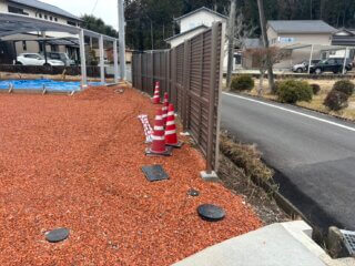 既存フェンス周りに、茶系の大きな栗石をバランスよく置きました。根強い雑草もいましたので、防草シートを敷いてしっかり雑草対策をさせて頂きました。雰囲気がパッと明るくなりました!完成してみると小さなヤシの木や、サボテンなども置きたくなりますね♪お時間がございましたら、是非ガーデニングも楽しんで頂けたらと思います!(^^)!ご依頼頂きありがとうございました。